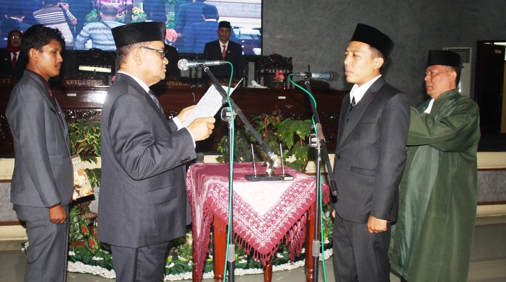 SLAWI – DPRD Kabupaten Tegal menggelar Rapat Paripurna DPRD Kabupaten Tegal agenda pengucapan sumpah dan janji Anggota DPRD Pengganti Antar Waktu (PAW) Kabupaten Tegal periode 2014-2019 di Gedung Paripurna DPRD setempat, kemarin. Anggota DPRD Tarmudi yang meninggal dunia karena sakit, digantikan caleg yang memperoleh suara di bawahnya dalam Pileg 2014 lalu, yakni Catur Buana Zanbika.