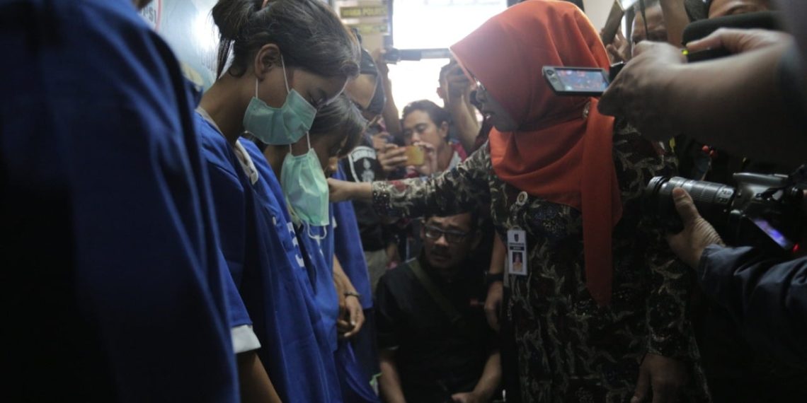 Bupati Tegal Dra. Umi Azizah mendatangi para pelaku di Mapolres Tegal.
