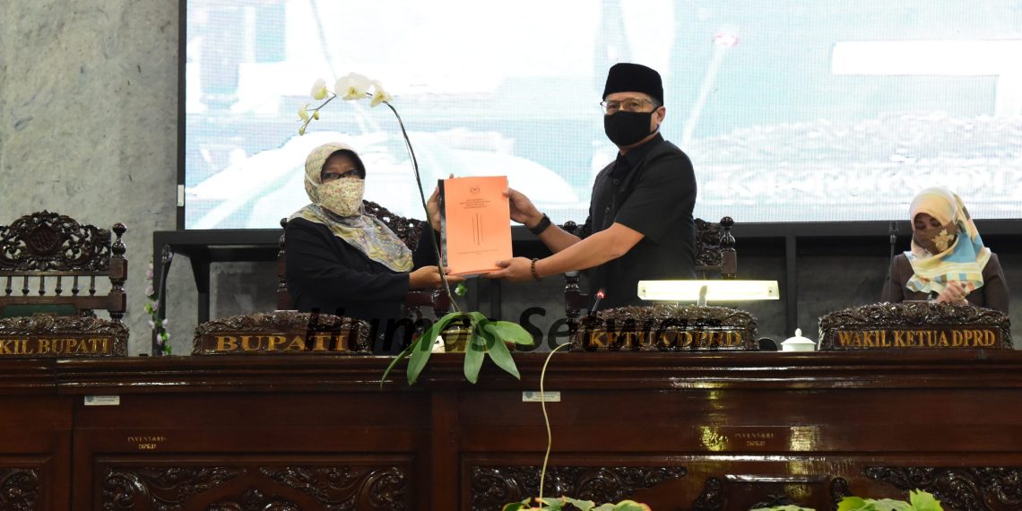 wakil Ketua DPRD Kabupaten Tegal Rudi Indiryani, SH menerima Raperda Pengantar Nota keuangan Rancangan Perubahan APBD Kabupaten Tegal TA 2020 dari Bupati Tegal Dra. Umi Azizah