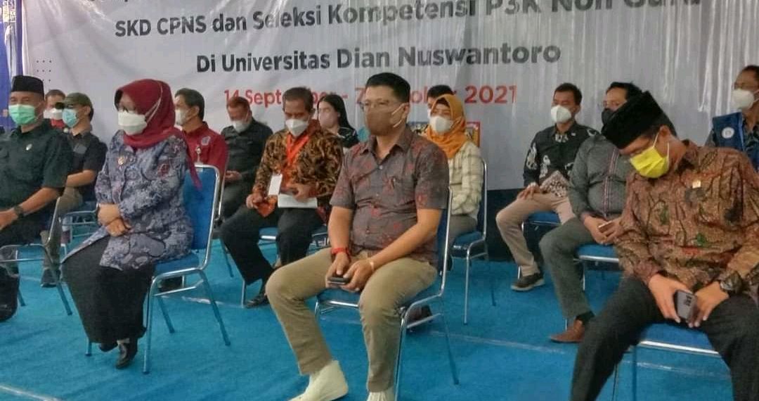 SLAWI- Dewan Perwakilan Rakyat Daerah (DPRD) Kabupaten Tegal melakukan kunjungan kerja dalam rangka memantau pelaksanaan tes Calon Pegawai Negeri Sipil (CPNS) Formasi 2021 di titik lokasi Semarang, bertempat di Kampus Udinus Semarang, Minggu (19/9/2021).