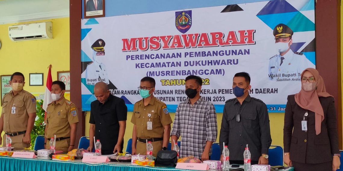 SLAWI – Empat Anggota Dewan Perwakilan Rakyat Daerah Kabupaten Tegal dapil I Slawi, Lebaksiu Dan Dukuhwaru, Agung YudhiKurniawan(Fraksi PDIP), Memet Said.ST (PDIP),Khuzaeni.SE.SH (Fraksi Golkar) dan Ninik Budiarti SM. MM(Fraksi Gerindra) menghadiri Musyawarah Perencanaan Pembangunan (Musrenbang) Kecamatan tahun 2022, di aula Kantor Kecamaatan Dukuhwaru Kabupaten Tegal,Senin (31/01/22).