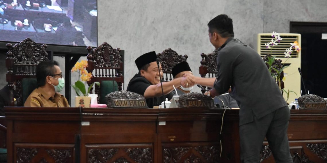 Bupati memberikan apresiasi serta penghargaan yang setinggi -tingginya, atas kinerja DPRD sebagaimana yang diatur dalam pasal 56 Undang – Undang Nomor 12 tahun 2011 tentang pembentukan Peraturan perundang- undangan Bahwa “Rancangan Peraturan Daerah berasal dari DPRD atau Bupati”