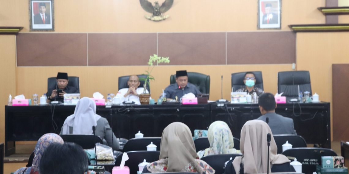 SLAWI – Dewan Perwakilan Rakyat Daerah (DPRD) Kabupaten Tegal menyelenggarakan Rapat Paripurna dalam rangka pandangan umum fraksi-fraksi terhadap rancangan peraturan daerah (Raperda) tentang pertanggungjawaban pelaksanaan APBD Kabupaten Tegal Tahun Anggaran 2021.