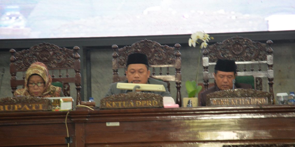 Rapat paripurna itu dipimpin Ketua DPRD Moh. Faiq S.Pi didampingi Wakil Ketua Agus Solichin.S.Ps.I, serta dihadiri para anggota dewan, Sekwan DPRD, Bupati Tegal dan para kepala OPD.