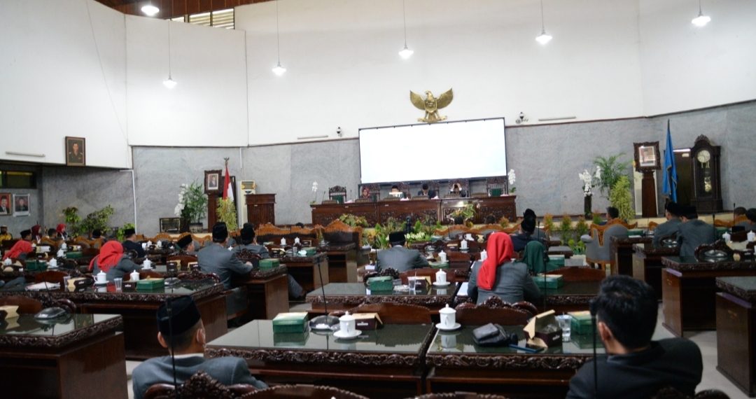 SLAWI- Dewan Perwakilan Rakyat Daerah (DPRD) Kabupaten Tegal menggelar rapat paripurna mengikuti pidato Presiden Republik Indonesia pada sidang tahunan MPR RI dan sidang bersama DPR RI dan DPD RI tahun 2023 dalam rangka peringatan Hari Ulang Tahun Republik Indonesia ke 78, Rabu (16/8/2023).