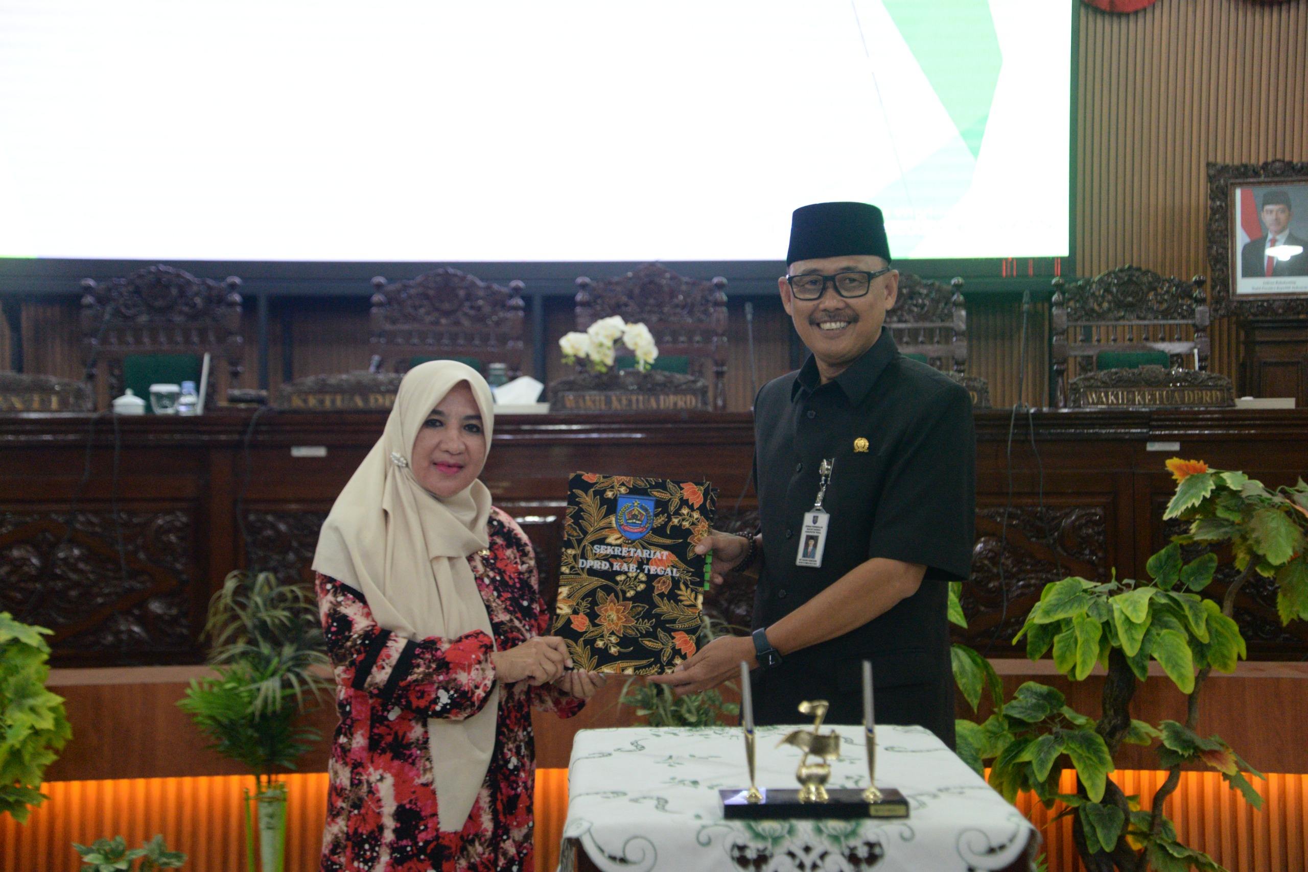 Rapat dipimpin Wakil Ketua DPRD Kabupaten Tegal,Sugono, dan dihadiri oleh Bupati Tegal Yang Di Wakili Asisten I Dra. Suspriyanti,MM serta jajaran Forkopimda, kepala perangkat daerah, dan seluruh anggota DPRD Kabupaten Tegal.