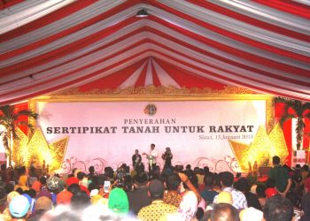 SLAWI - Presiden RI, Joko Widodo (Jokowi) menyerahkan 4.999 sertipikat tanah warga di empat kabupaten/ kota di wilayan pantura barat...